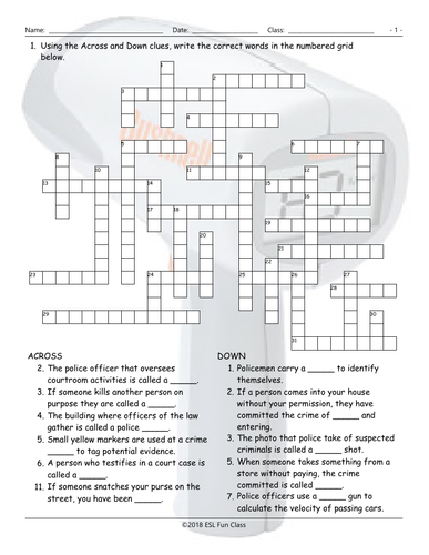 Crime Law Enforcement Courts Crossword Puzzle Teaching Resources