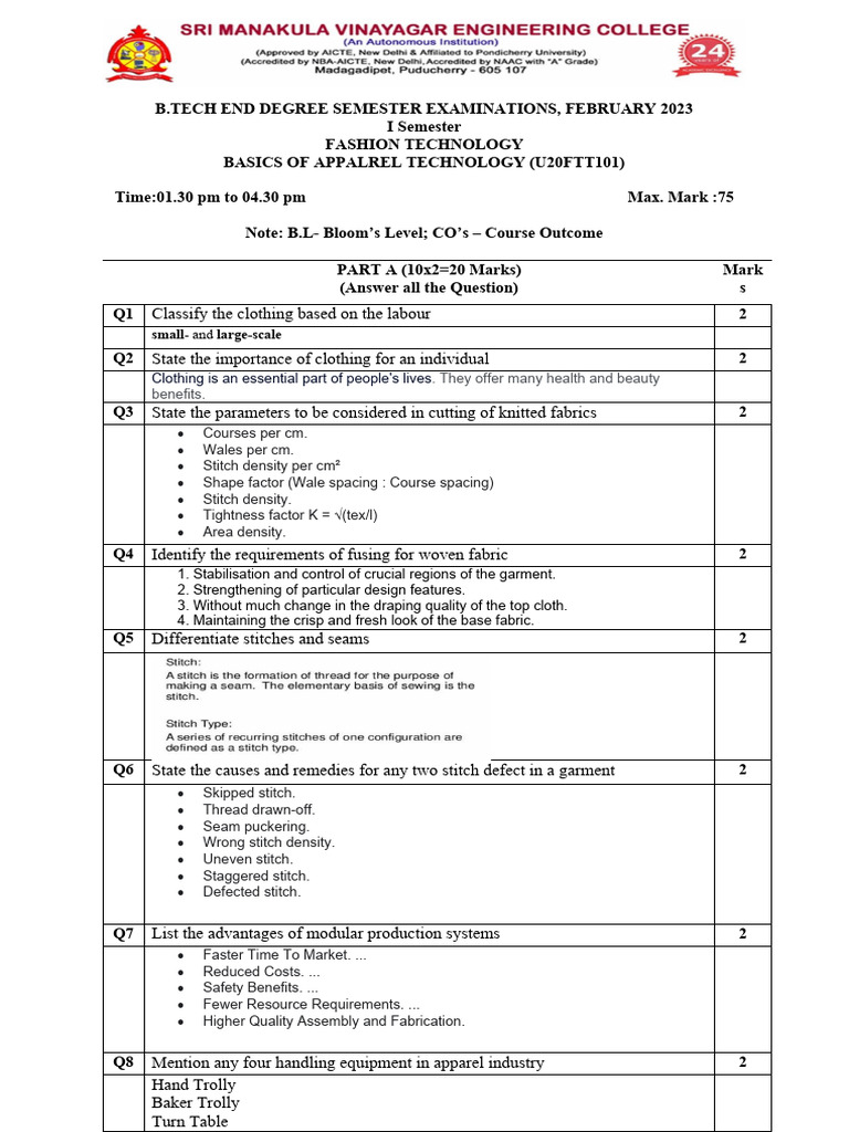 BAT KEY 2022 2026 Batch PDF Textiles Seam (Sewing)