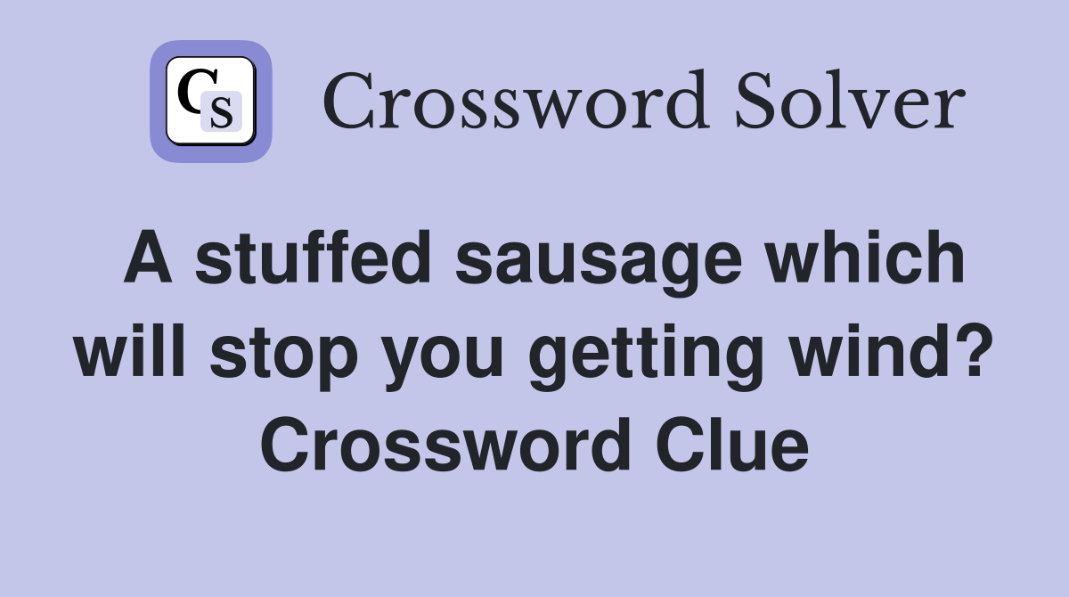 A stuffed sausage which will stop you getting wind? Crossword Clue