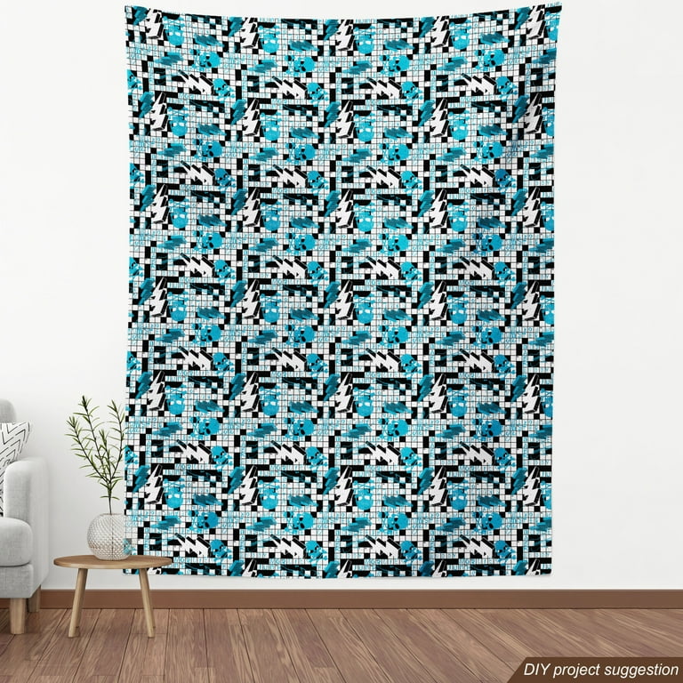 Retro Fabric by the Yard Upholstery Crossword Puzzle Theme with Skulls