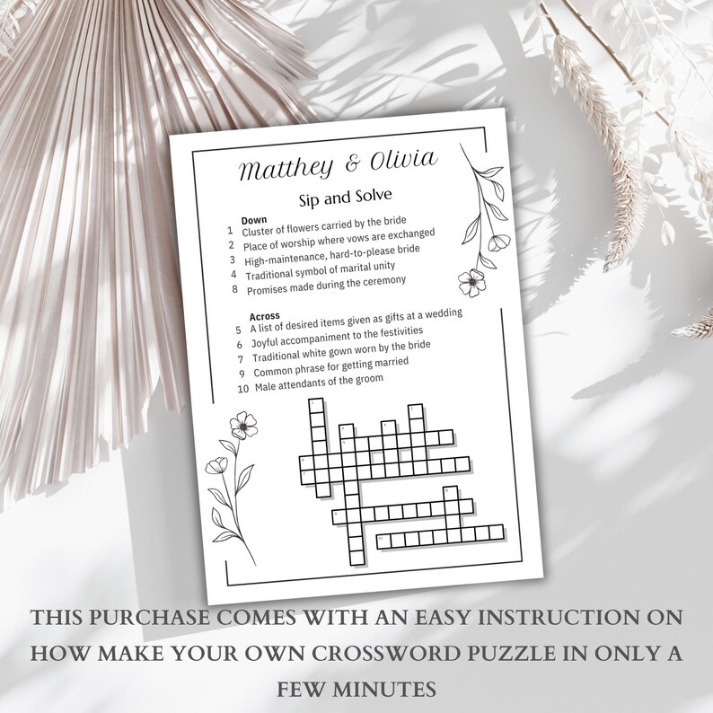 Wedding Crossword Puzzle: Sip and Solve Guest Game (canva Template) Etsy