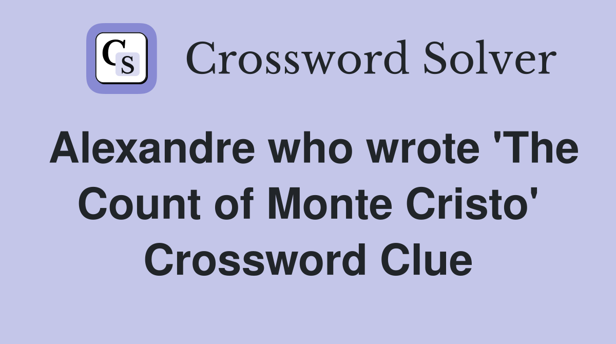 Alexandre who wrote The Count of Monte Cristo Crossword Clue