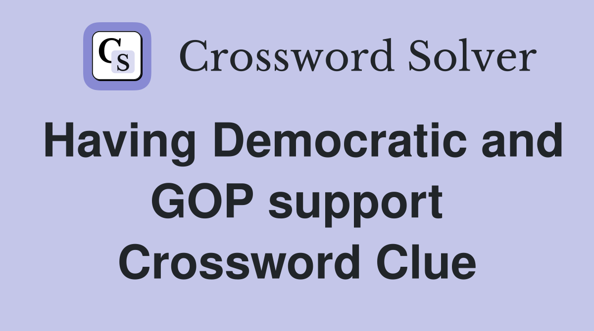 Having Democratic and GOP support Crossword Clue Answers Crossword