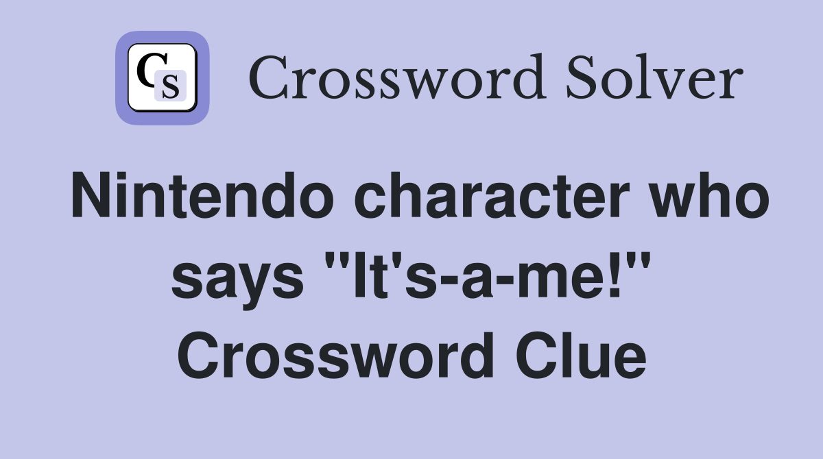 Nintendo character who says quot It #39 s a me quot Crossword Clue Answers