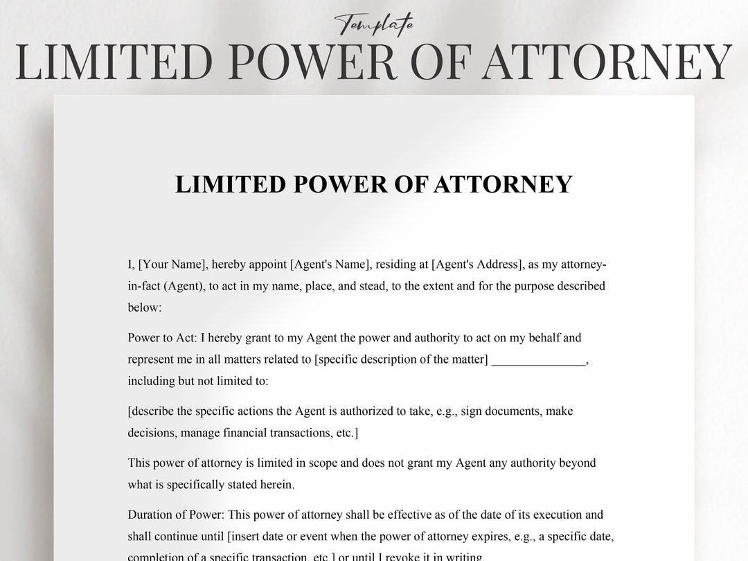 Limited Power of Attorney Template Etsy