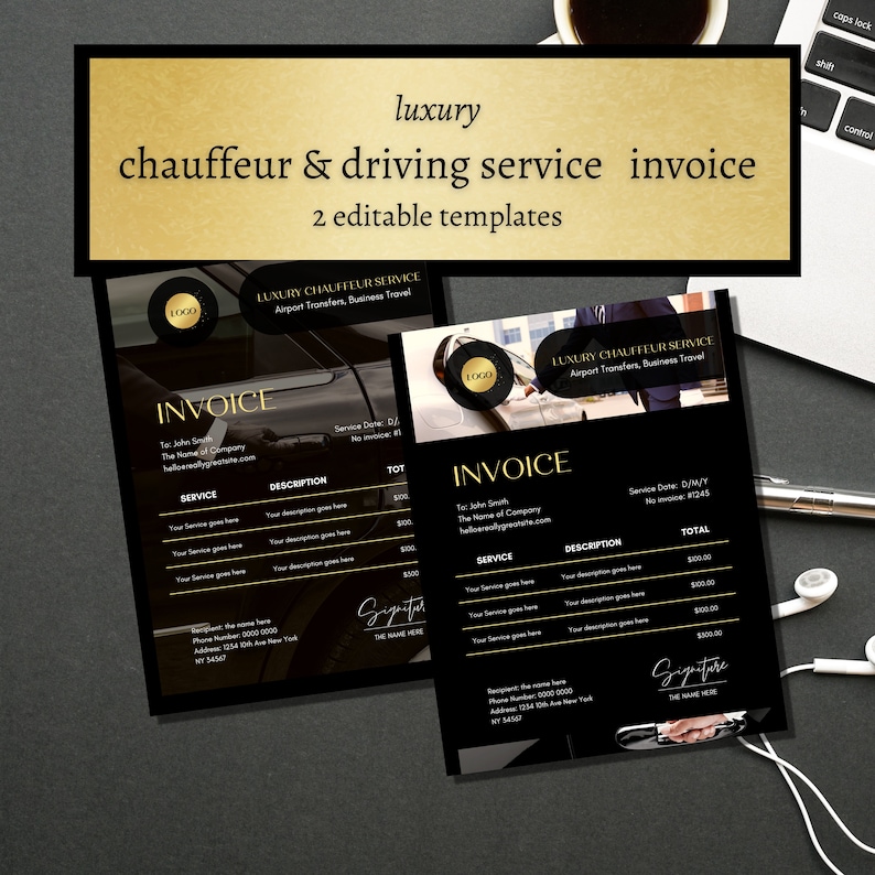 INVOICE Template Chauffer Driving Services Invoice Custom Black