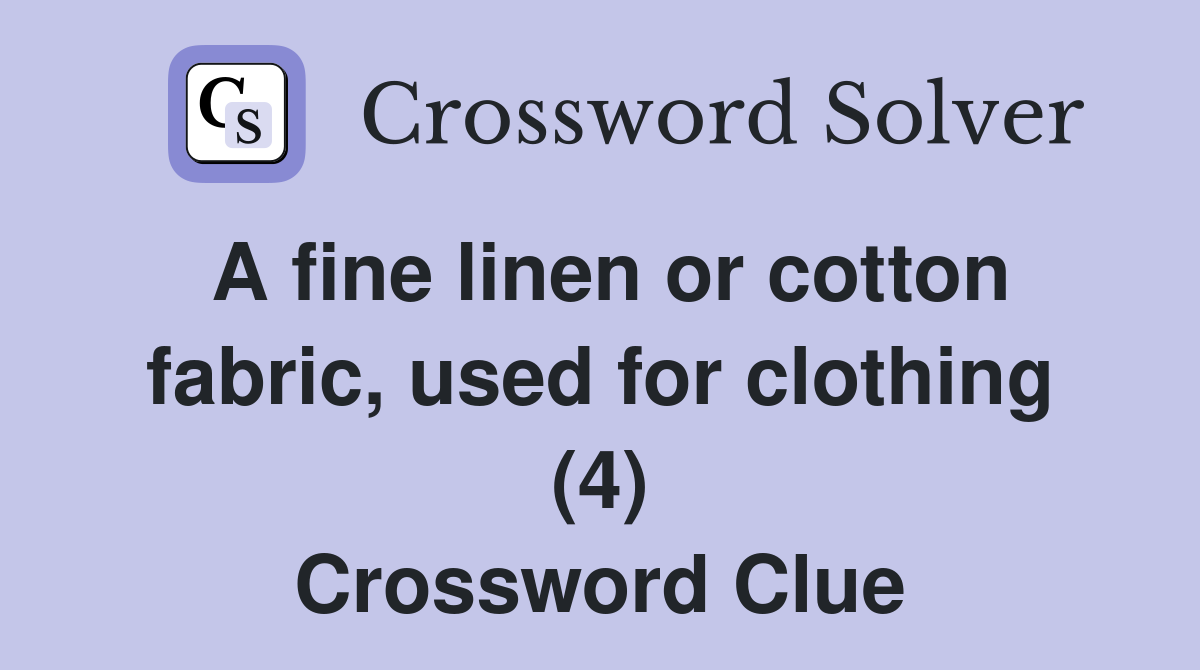 A fine linen or cotton fabric used for clothing (4) Crossword Clue