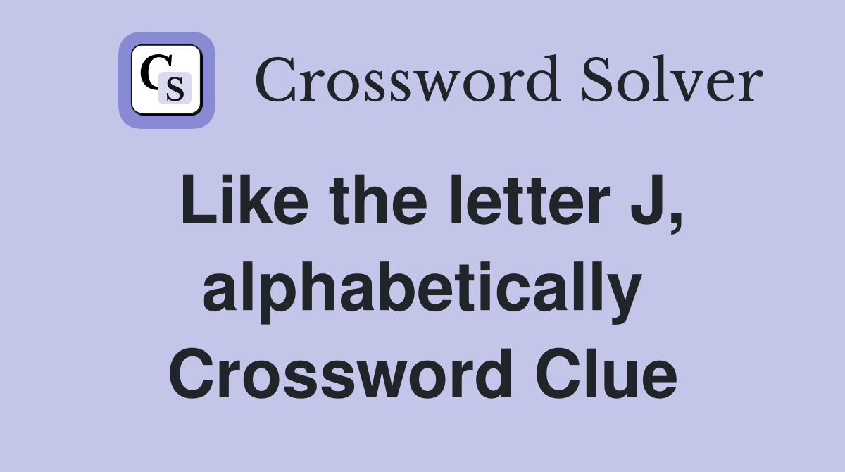 Like the letter J alphabetically Crossword Clue Answers Crossword