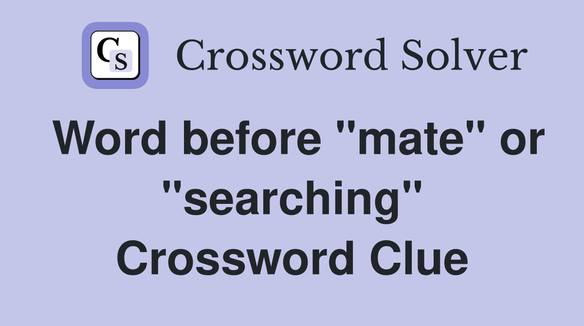 Word before quot mate quot or quot searching quot Crossword Clue Answers Crossword