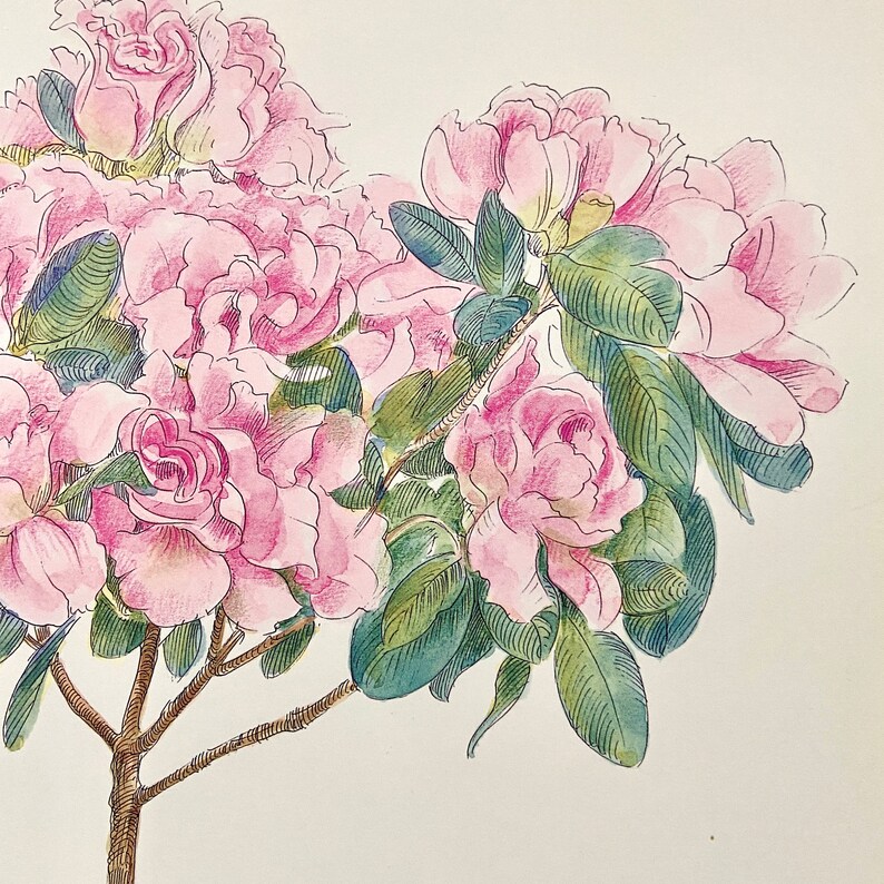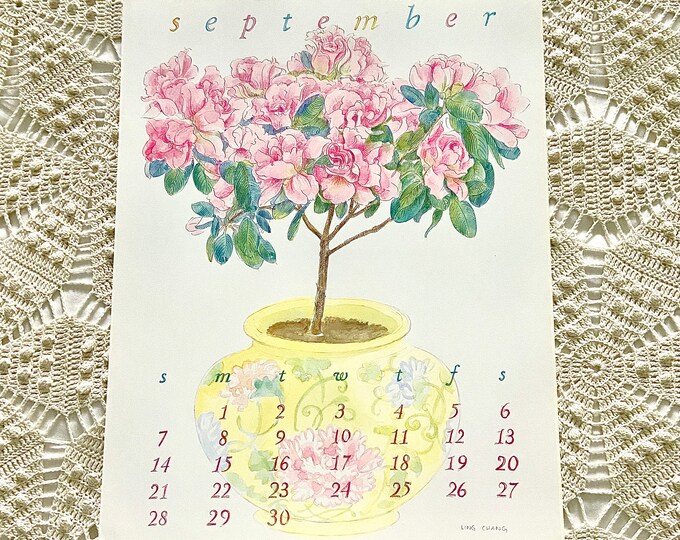Ling Chang September Calendar Poster Pink Azalea Art Print Etsy