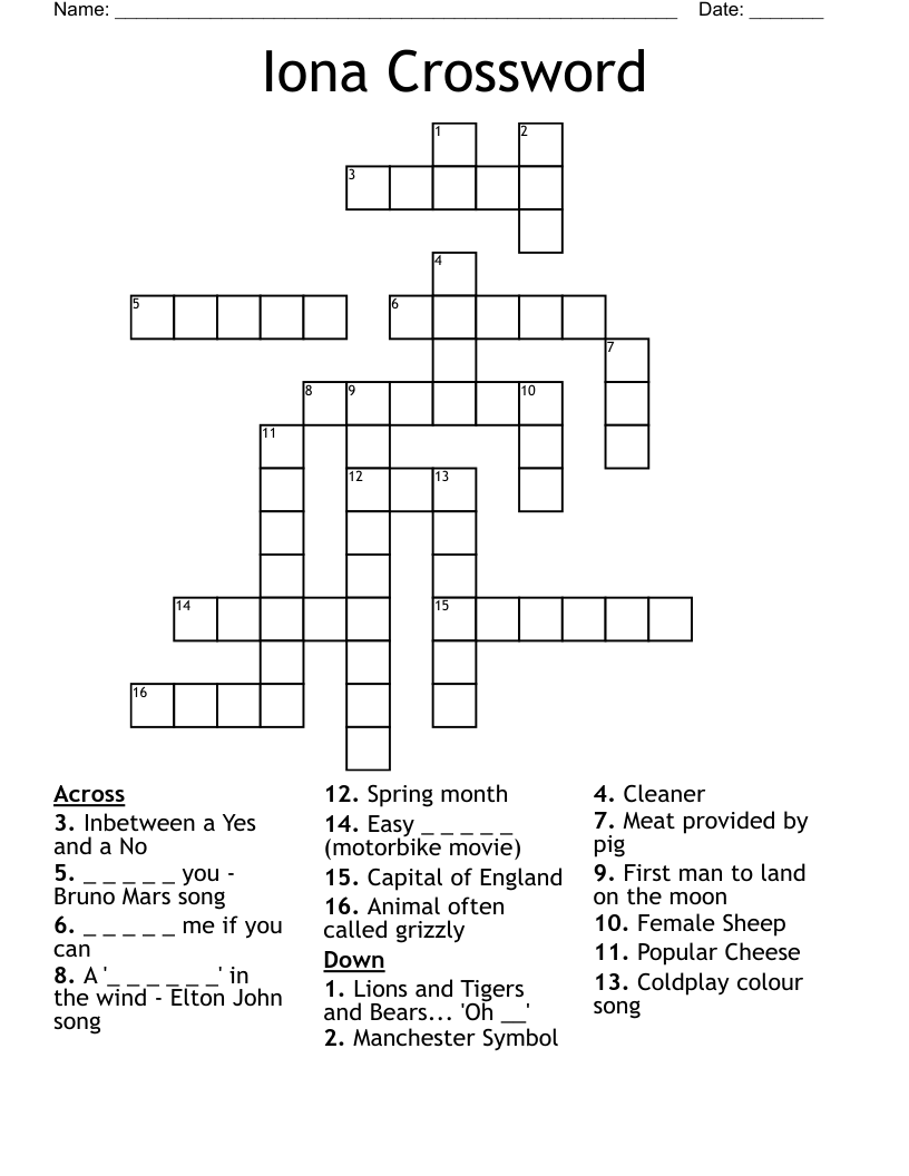 Iona Crossword WordMint