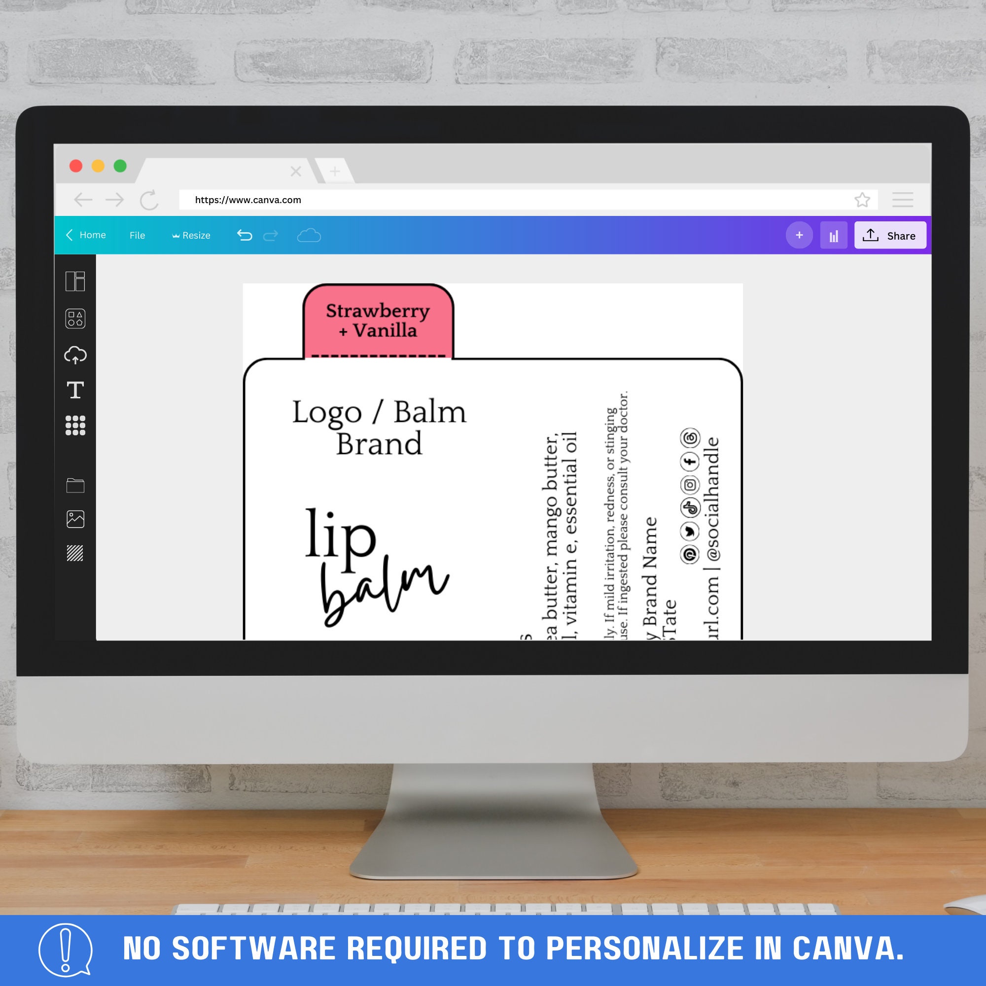 Editable Lip Balm Labels Template Canva Printable Lipbalm Tube Label