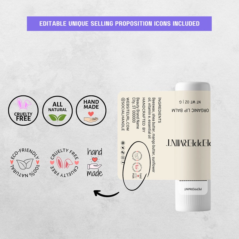 Editable Lip Balm Label Template for Canva DIY Organic Lip Balm Tube