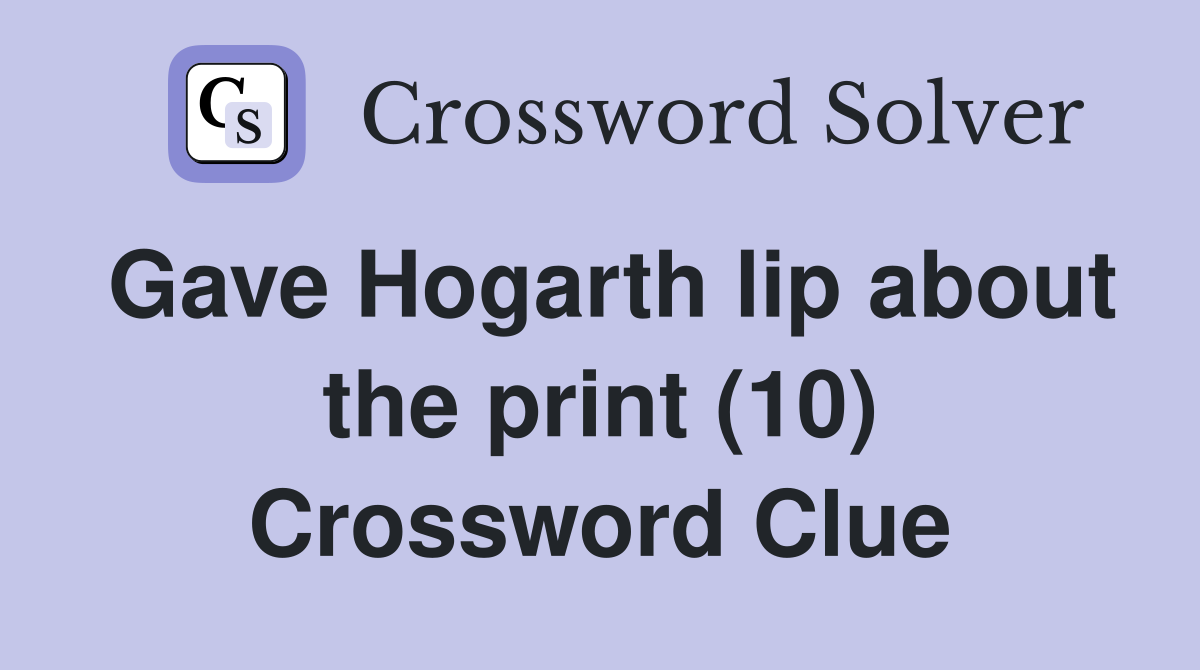 Gave Hogarth lip about the print (10) Crossword Clue Answers