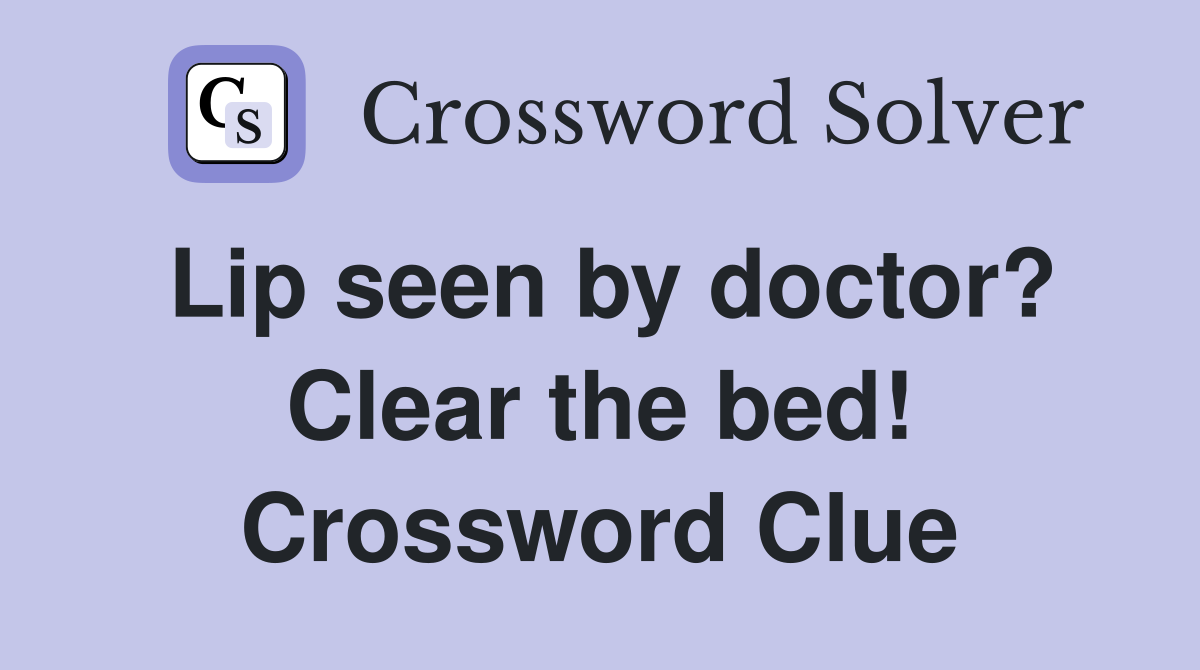 Lip seen by doctor? Clear the bed Crossword Clue Answers Crossword