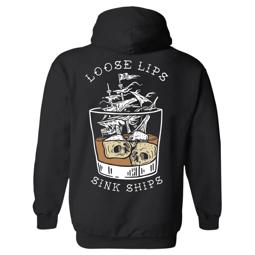 Loose Lips Sink Ships Skull Printed Men #39 s Hoodie