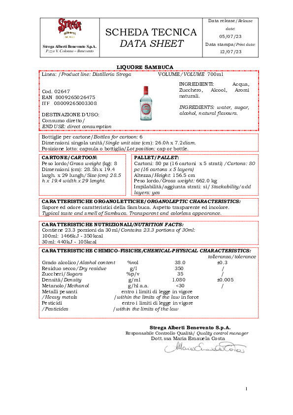 Strega Sambuca Liqueur 38% 0 70 l 1001Spirits