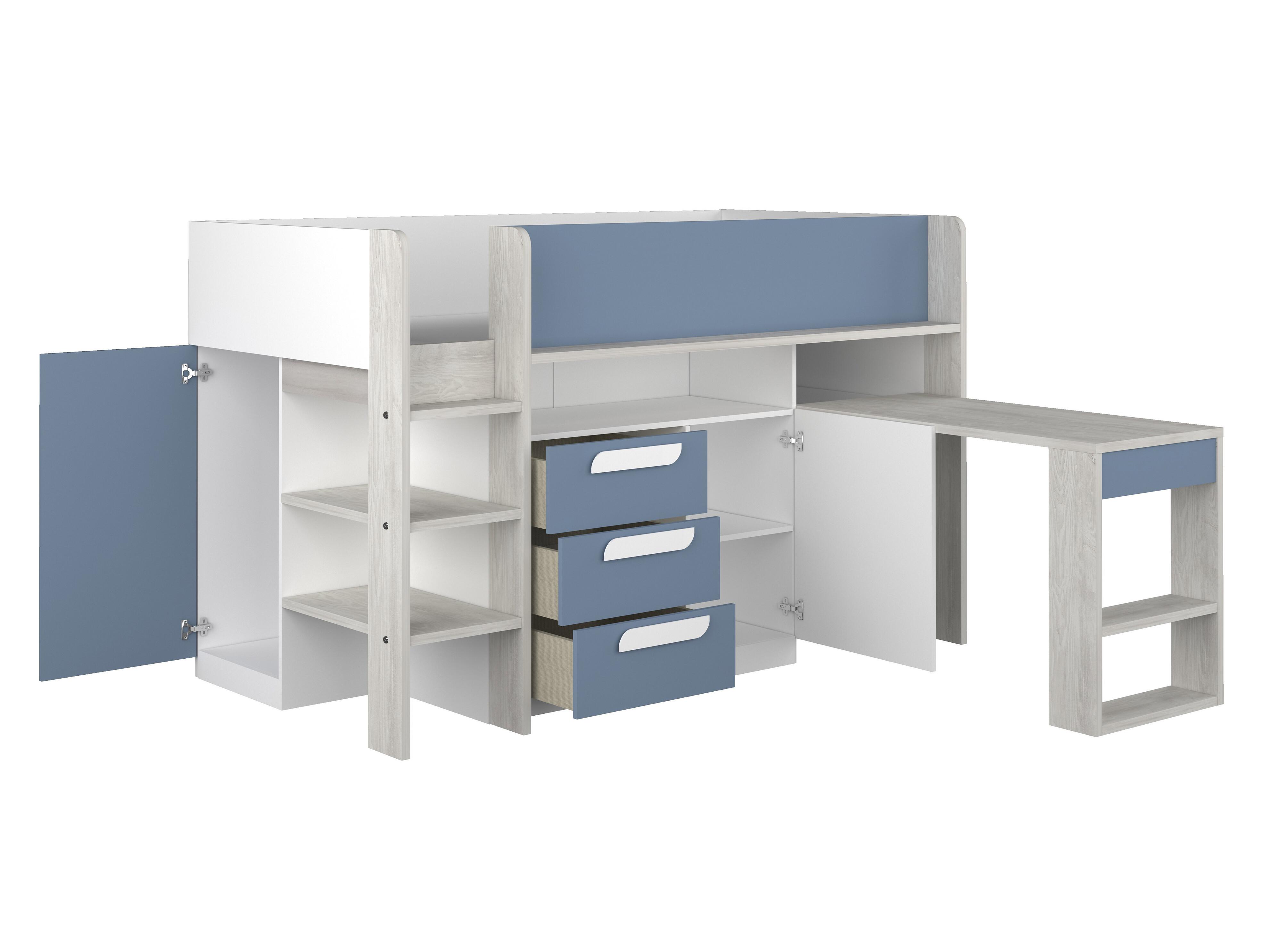 Lit combiné 90 x 200 cm avec bureau et rangements bleu naturel et