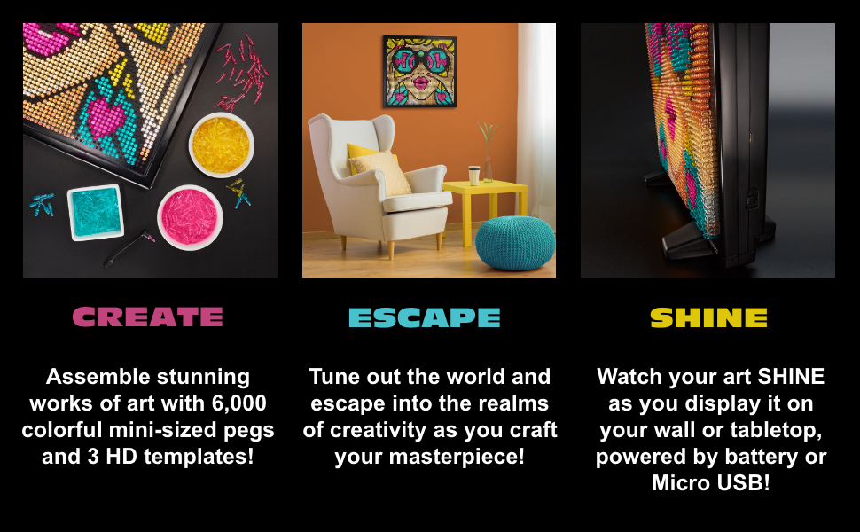 Lite Brite Wall Art POP WOW 16 quot x 16 quot 6 000 Mini Pegs 3 HD Designs