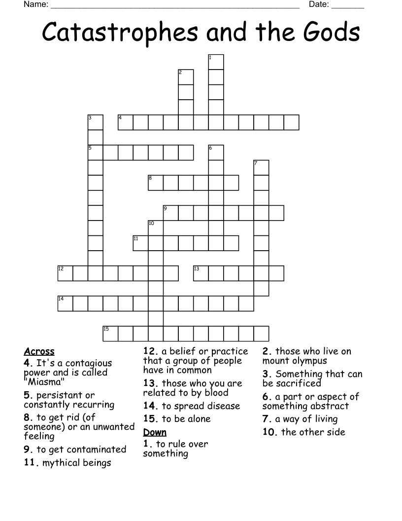 Catastrophes and the Gods Crossword WordMint