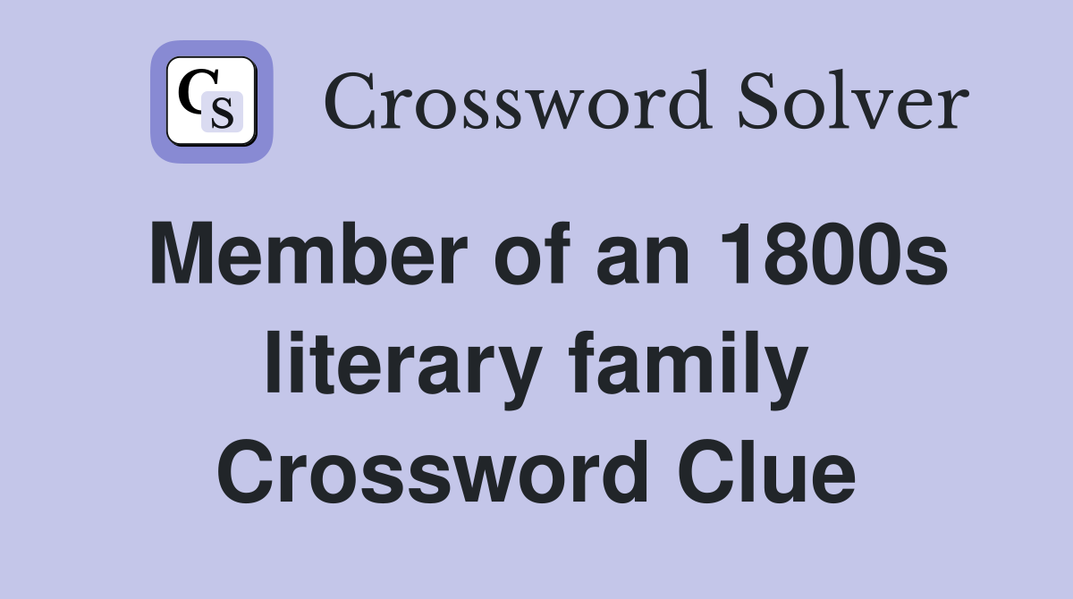 Member of an 1800s literary family Crossword Clue Answers Crossword