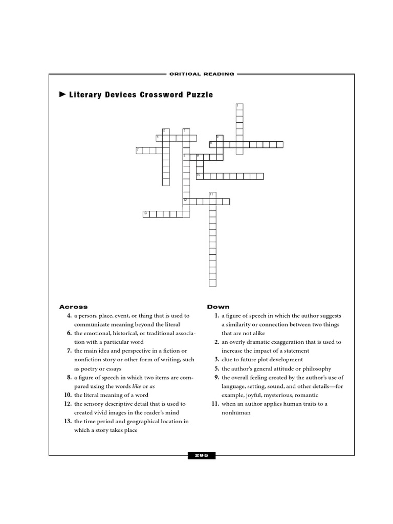 Features of a Formalist Literary Criticism Crossword Puzzle