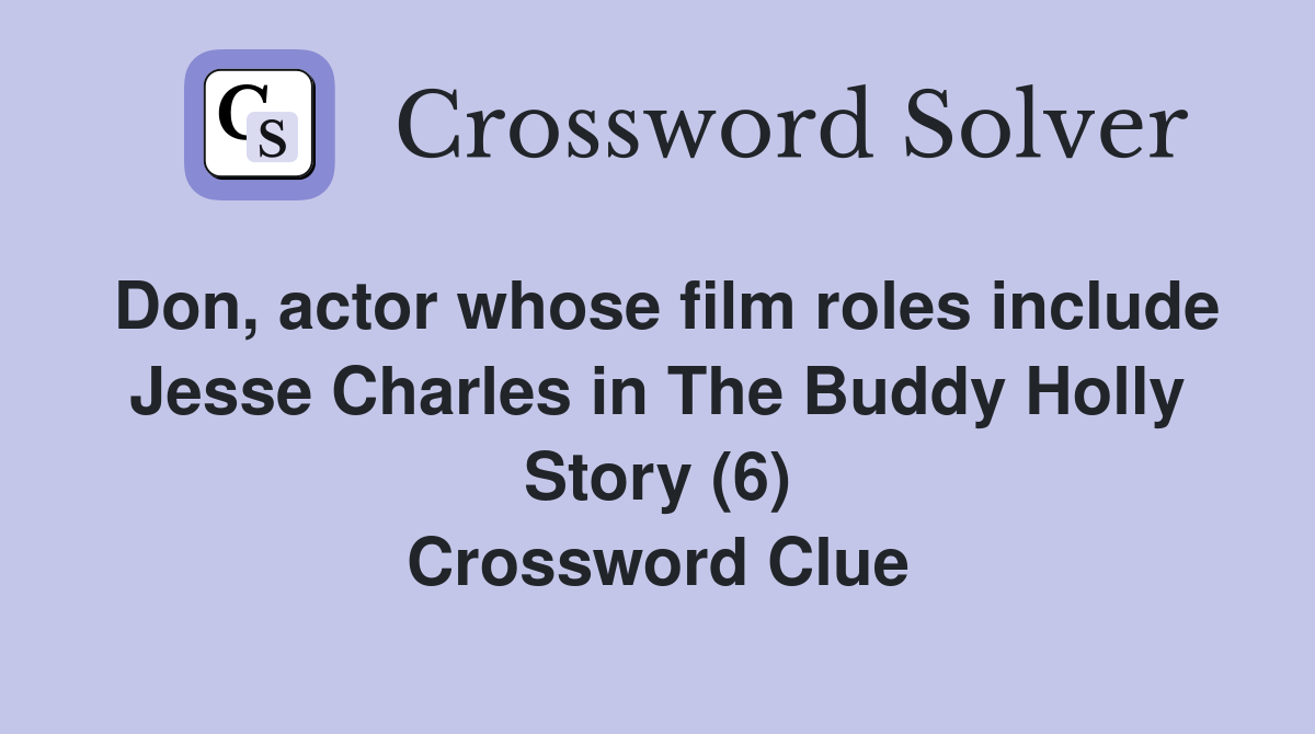 Don actor whose film roles include Jesse Charles in The Buddy Holly