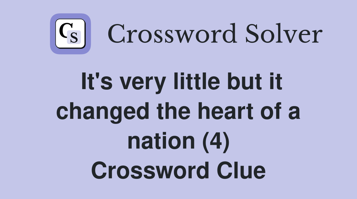 It #39 s very little but it changed the heart of a nation (4) Crossword