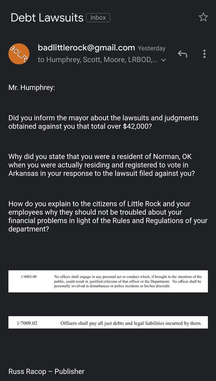 Bad City of Little Rock: Court records reveal LRPD chief didn #39 t pay