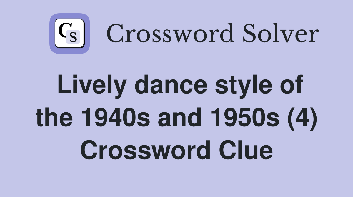 Lively dance style of the 1940s and 1950s (4) Crossword Clue Answers