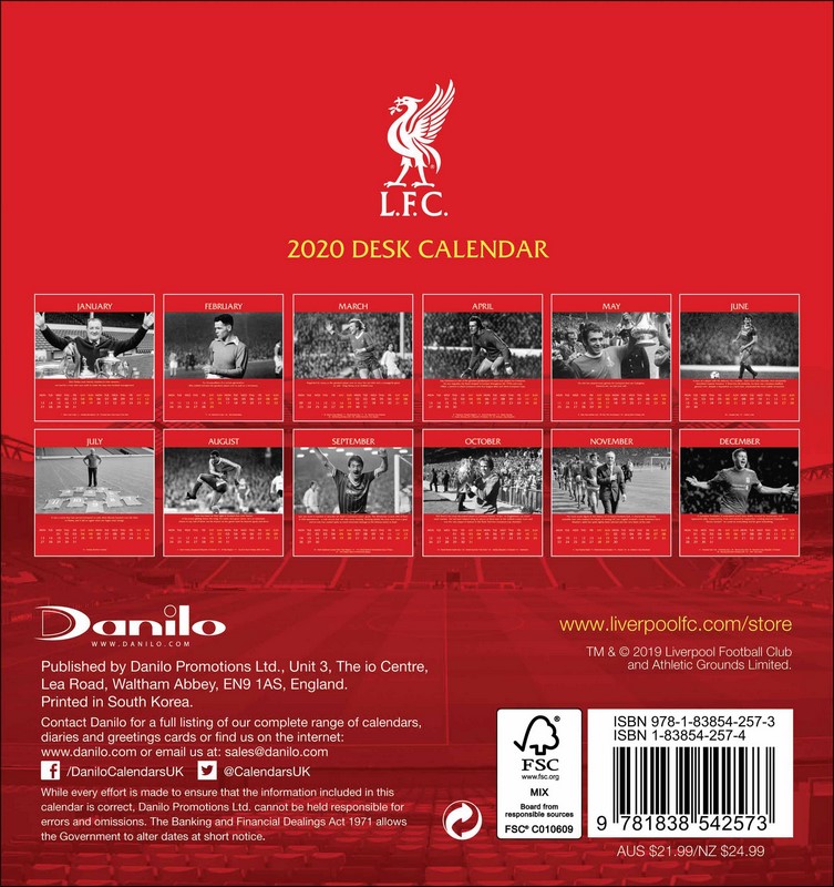 Liverpool FC 2020 Desk Easel Calendar Official Desk Easel Format