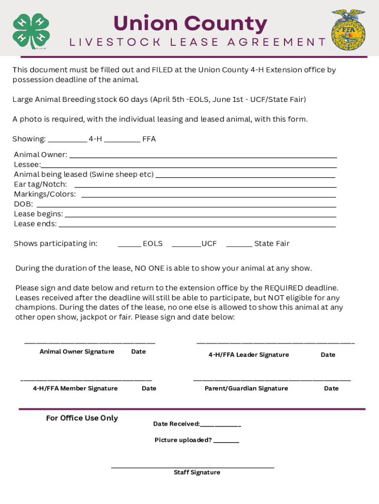 Fillable Online Livestock Lease Agreement for 4 h and Ffa Fax Email