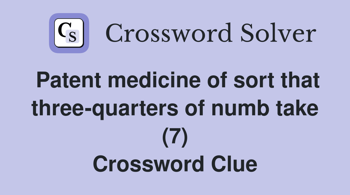 Patent medicine of sort that three quarters of numb take (7