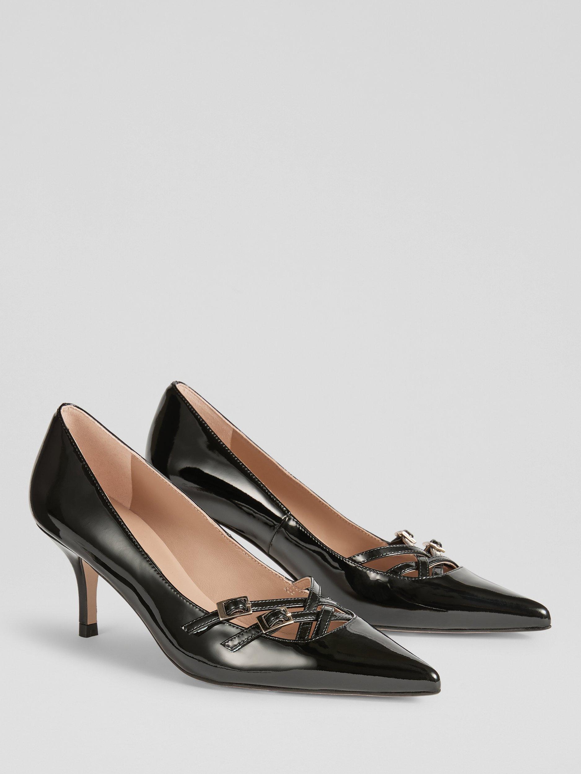 L K Bennett Laila Patent Leather Multi Buckle Court Shoes Black