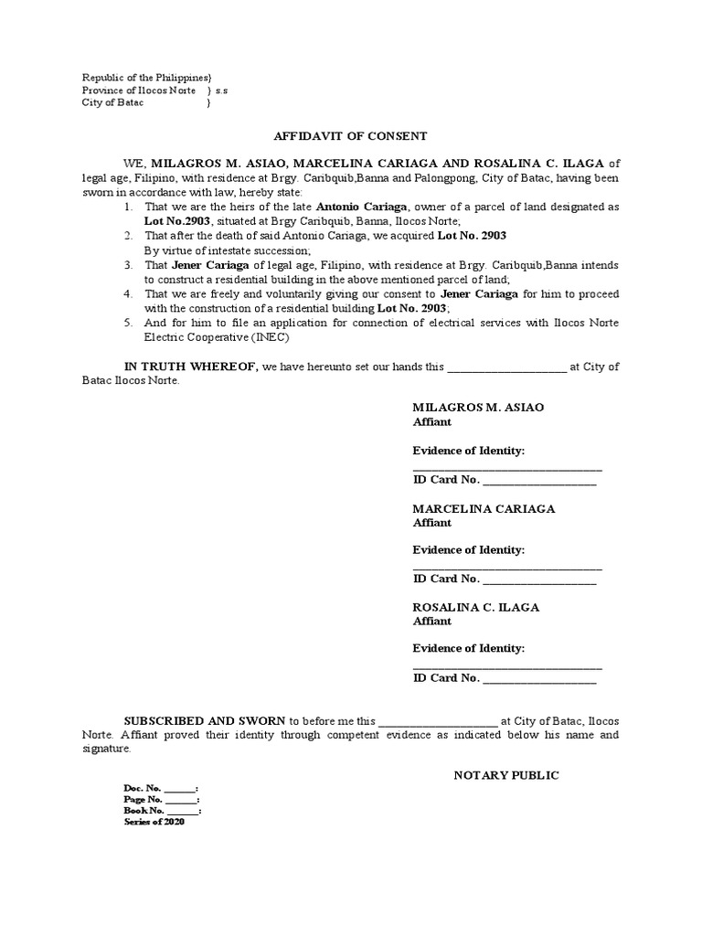 Affidavit of Consent PDF Affidavit Civil Law (Common Law)