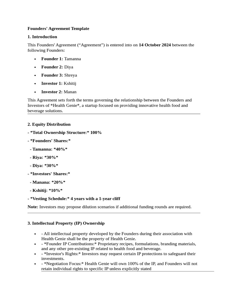 Founders Agreement Template