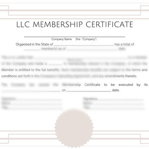LLC Membership Certificate ︱ Instant Download︱pdf Etsy