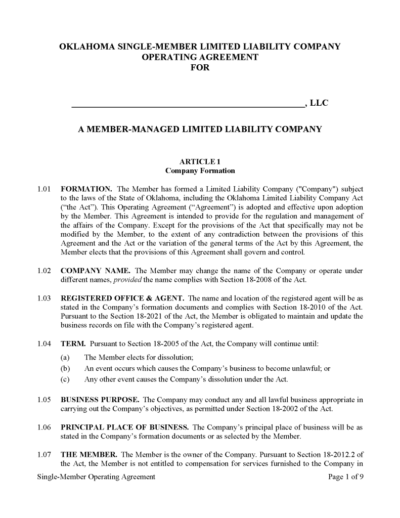 Free Oklahoma LLC Operating Agreements (2) Free LLC Operating