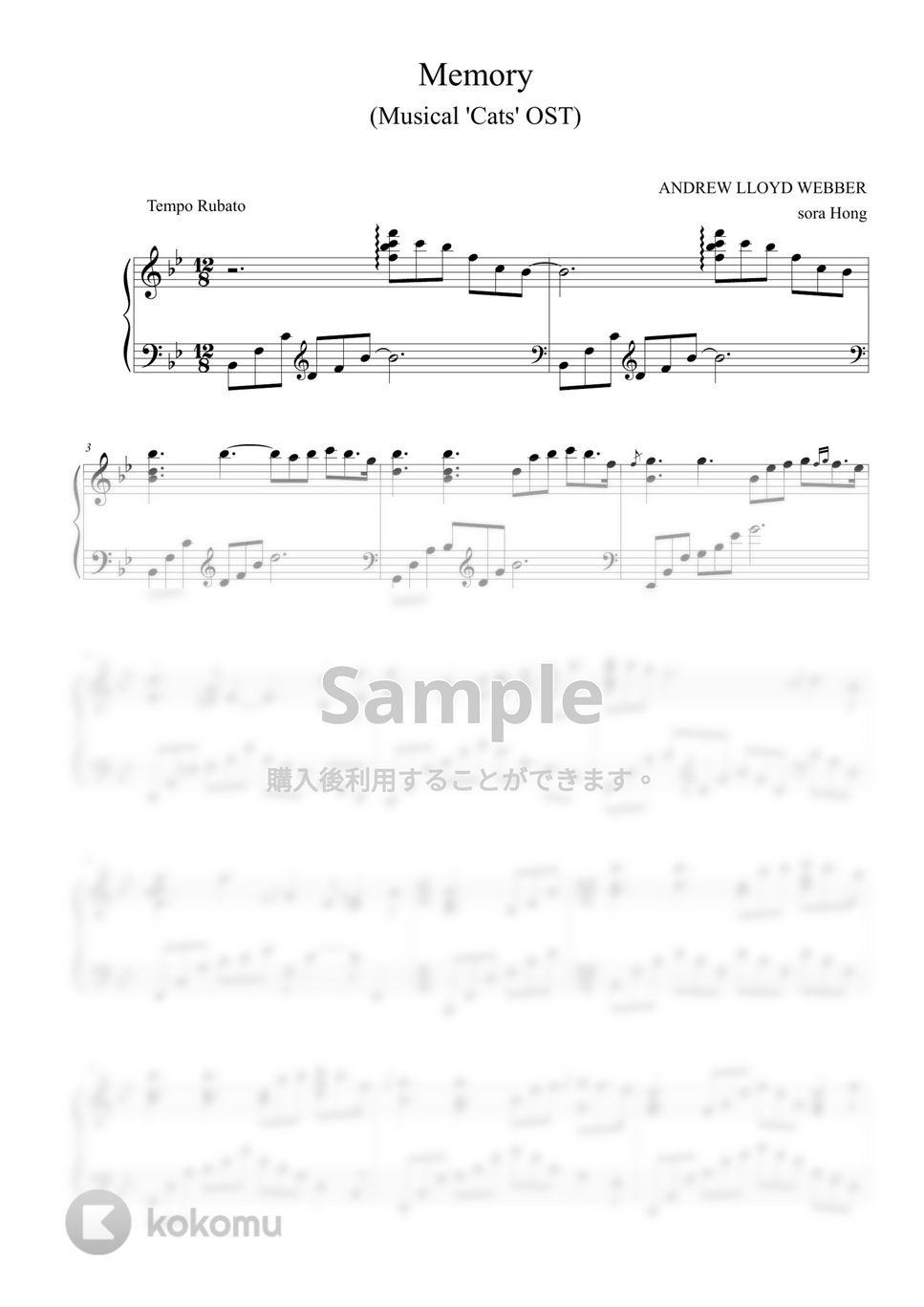 Andrew Lloyd Webber Memory(Musical Cats OST) 楽譜 by sora Hong