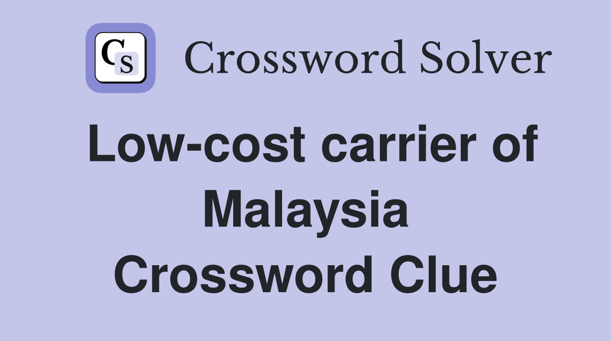 Low cost carrier of Malaysia Crossword Clue Answers Crossword Solver