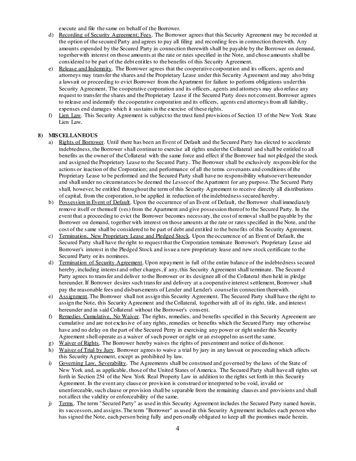 Co Operative Apartment Loan Security Agreement Edit Fill Sign