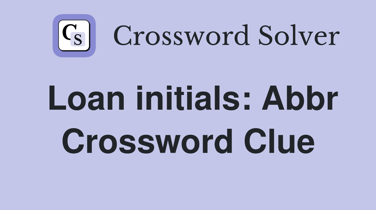Loan initials: Abbr Crossword Clue Answers Crossword Solver