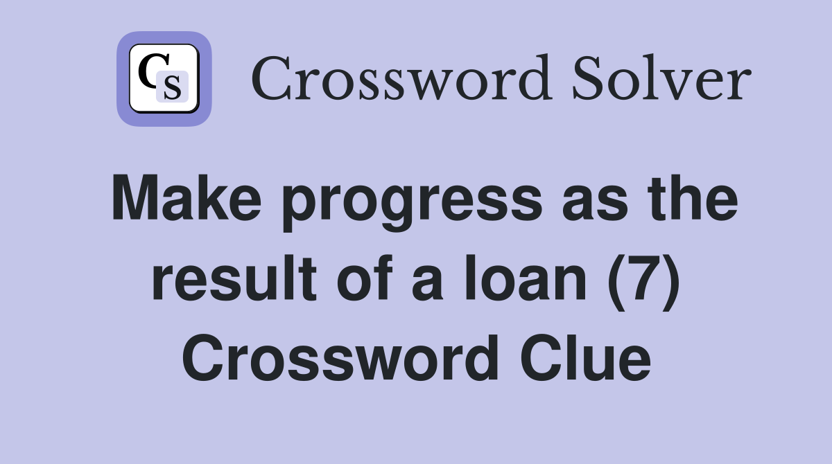 Make progress as the result of a loan (7) Crossword Clue Answers