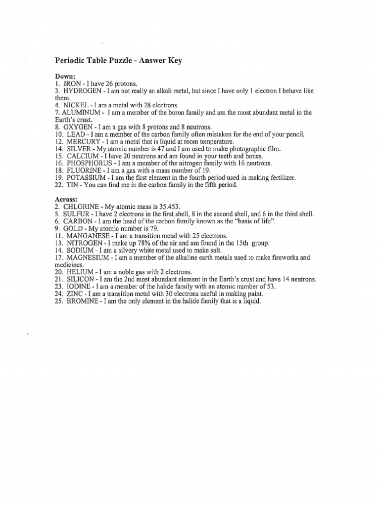 Atomic Structure Crossword Worksheet Answer Key