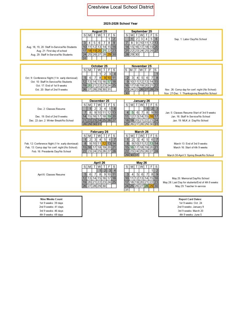Crestview Local School District Calendar 25 26 Revised PDF EduCounty
