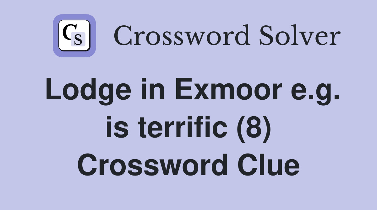 Lodge in Exmoor e g is terrific (8) Crossword Clue Answers