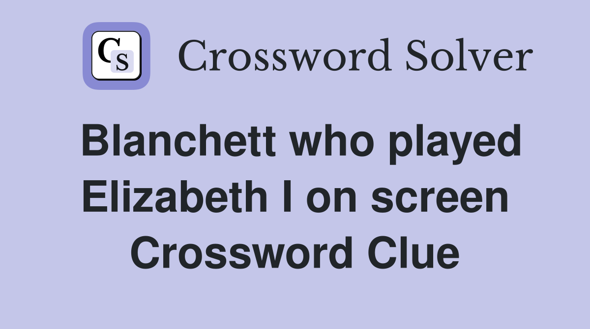 Blanchett who played Elizabeth I on screen Crossword Clue Answers