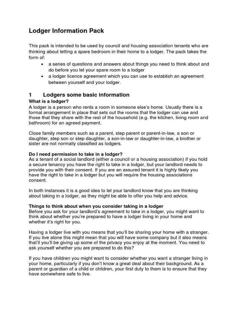Shelter Lodger Agreement Template Midi box com