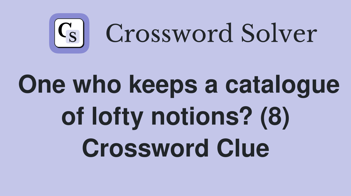 One who keeps a catalogue of lofty notions? (8) Crossword Clue