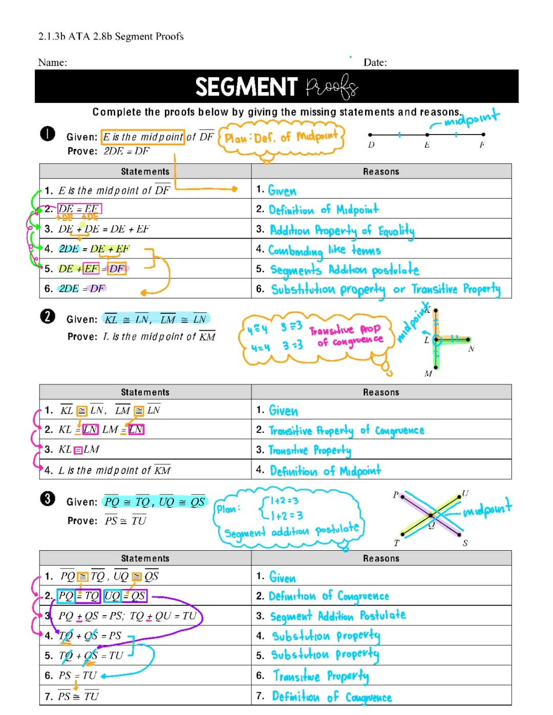 SOLUTION: Unit 2 Logic and Proof Segment Proofs Worksheet Studypool